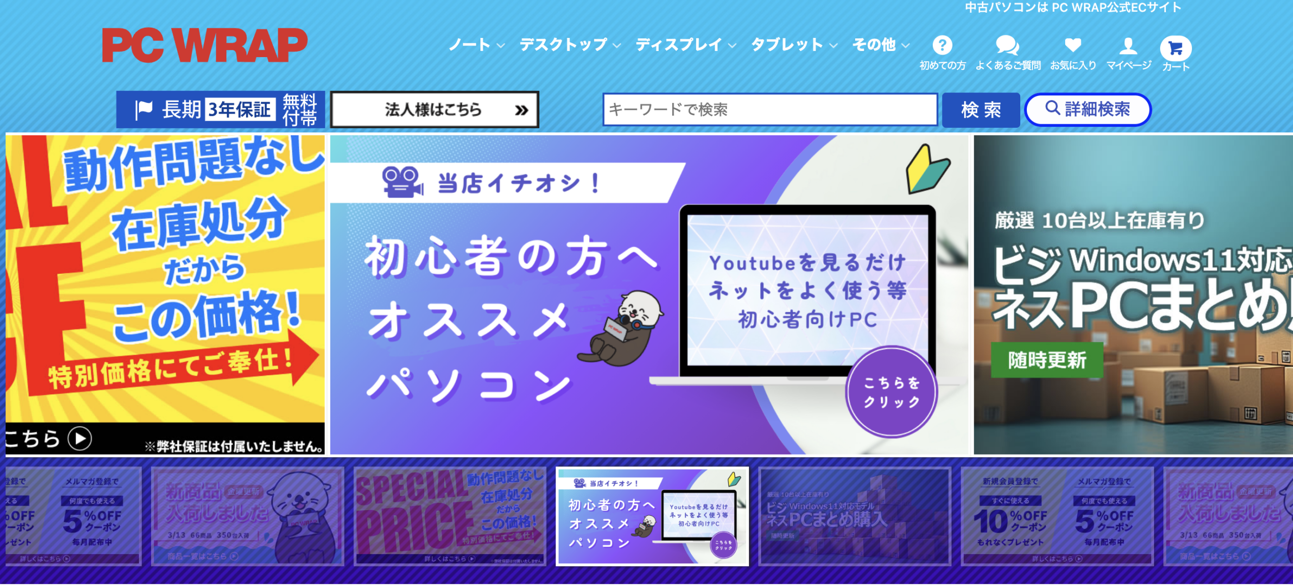 法人向けリース落ちPCを中心に扱うショップで、ビジネス用途に強いラインナップが特徴です。