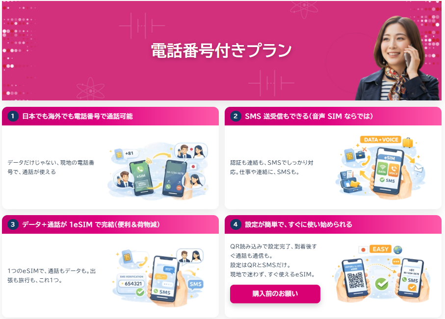 海外通信サービスにありがちな「設定が難しい」「英語で分からない」といった不安を感じることなく、日本語でスムーズに操作できる点は、初心者にとって非常に大きなメリットです。