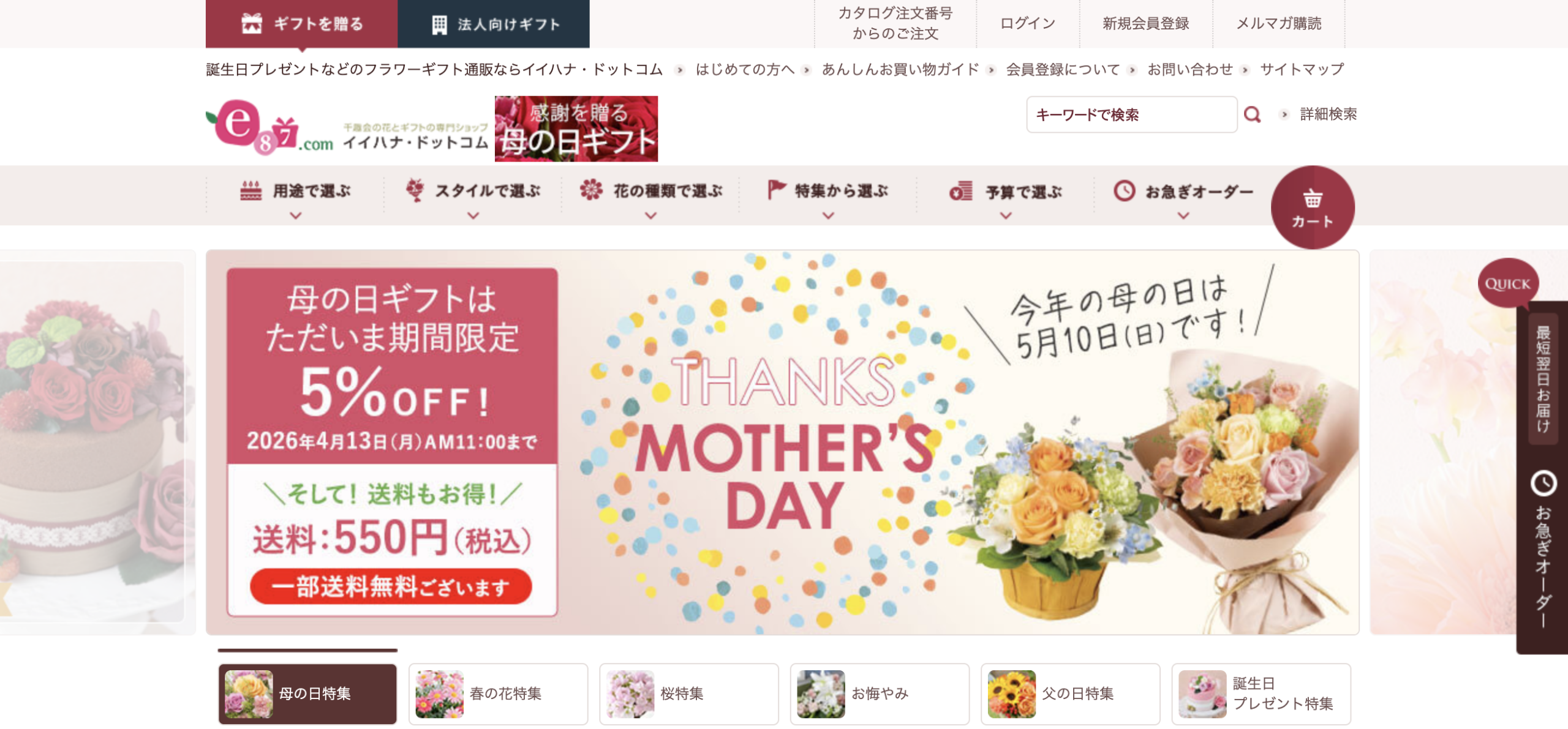 ・母の日特集ページあり