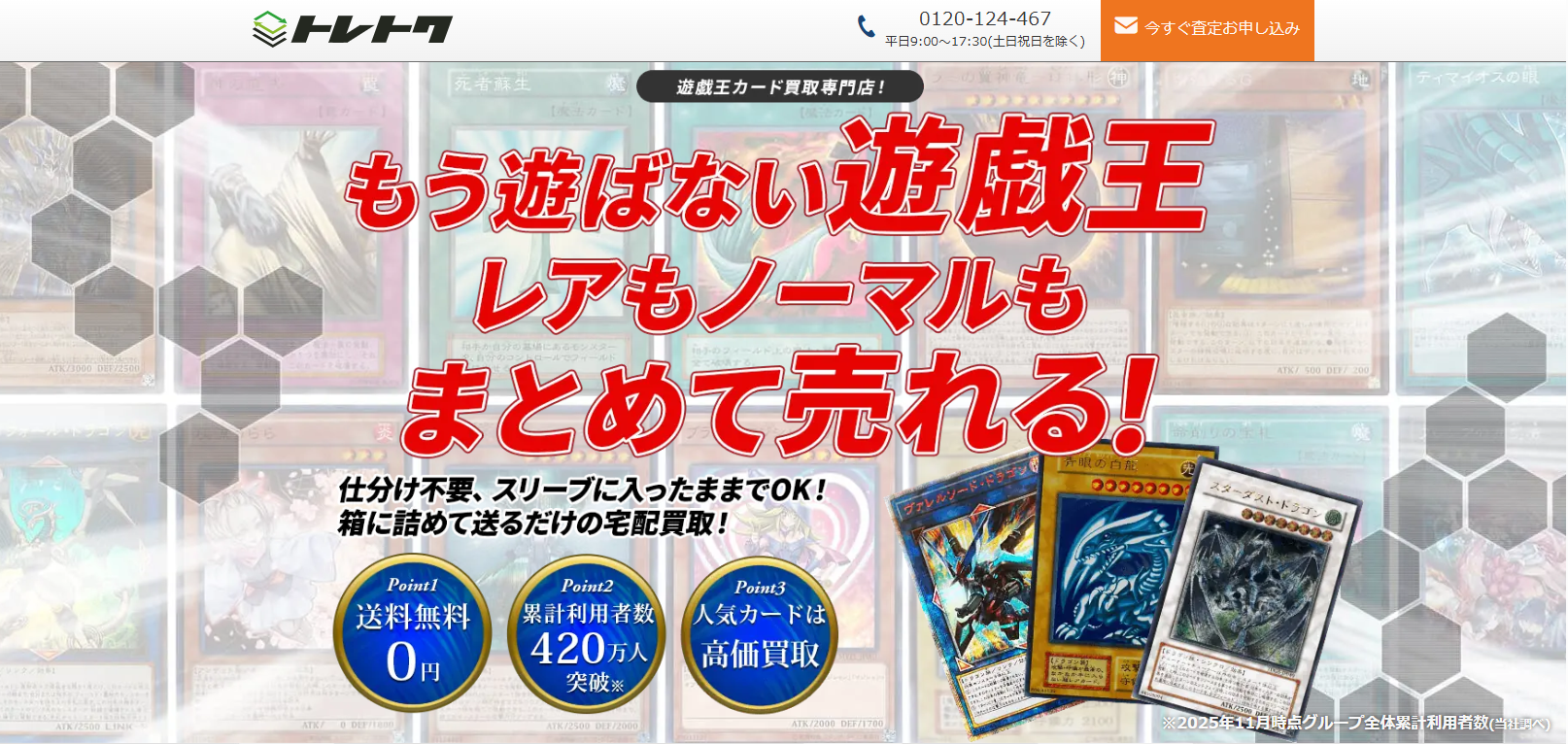 トレトクは、遊戯王カードをはじめとしたトレーディングカードの宅配買取サービスとして、多くの利用者に選ばれているサービスのひとつです。特に「まとめて処分したい」「できるだけ手間をかけずに売りたい」と考える方にとって、使いやすい仕組みが整っている点が特徴です。