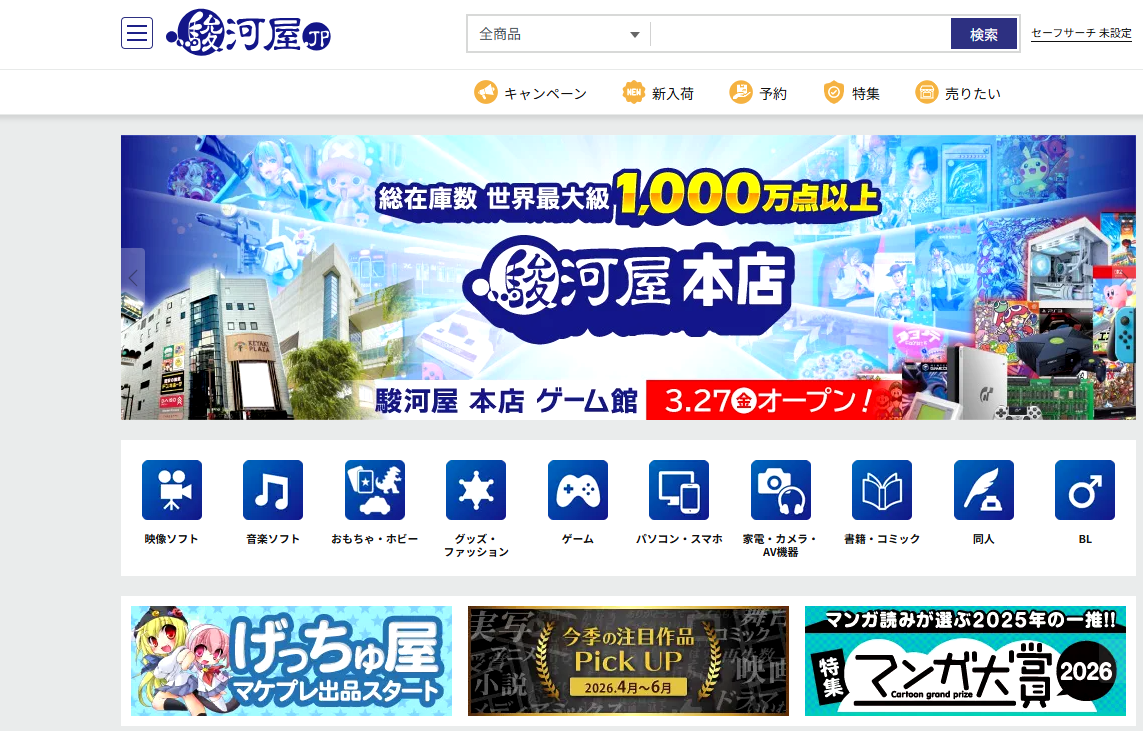 駿河屋は、トレーディングカードだけでなく、ゲームや書籍、ホビーなど幅広いジャンルの買取に対応している総合サービスです。そのため、遊戯王カード以外にも一緒に整理したいものがある場合には便利な選択肢となります。