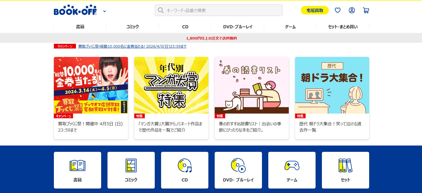 ブックオフオンラインは、書籍やゲームなどの買取で広く知られているサービスで、宅配買取にも対応しています。知名度が高く、これまでに利用したことがある方も多いため、気軽に利用しやすい点が特徴です。
