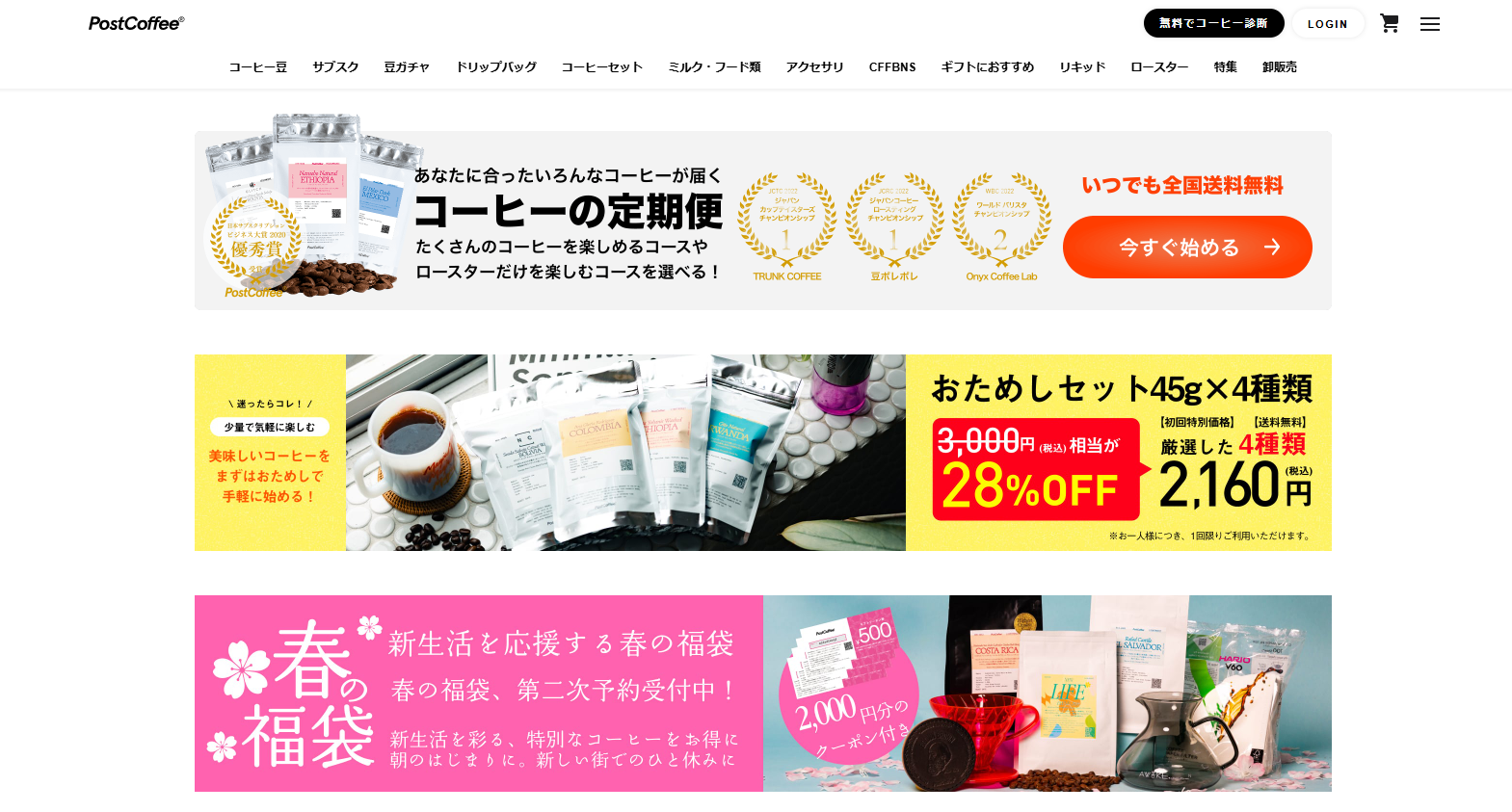 PostCoffeeは、オンライン診断をもとに自分に合ったコーヒーが届くサブスク型サービスとして注目されています。ライフスタイルや味の好みに合わせてカスタマイズされるため、初心者でも失敗しにくいのが特徴です。