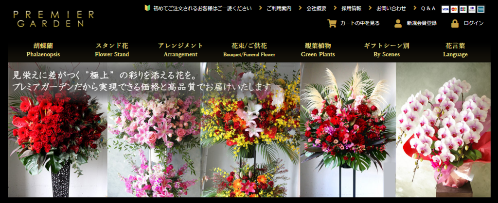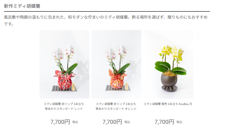 百貨店や実店舗展開もあり、信頼性の高さはトップクラス。胡蝶蘭も安定した品質で提供されています。