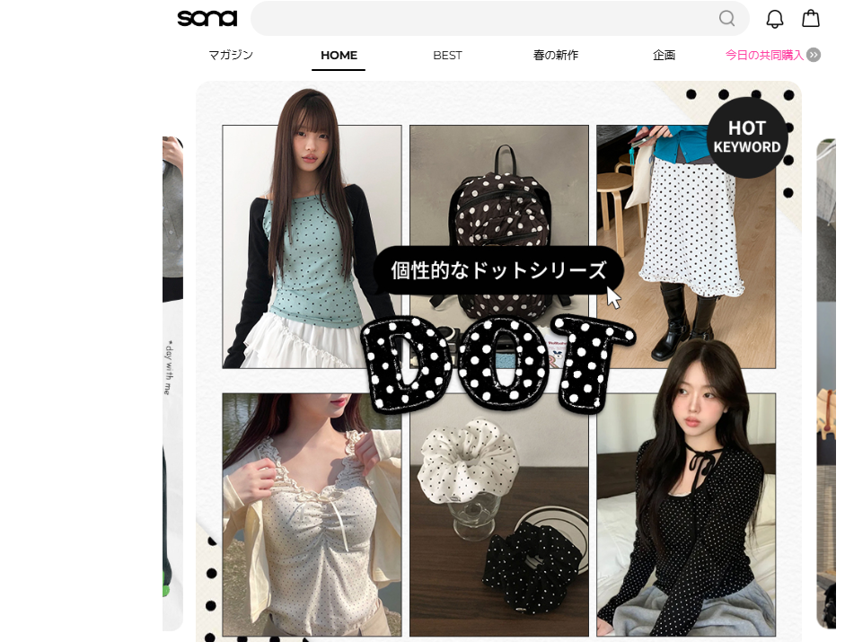 SONAは、比較的リーズナブルな価格帯で韓国ファッションを楽しめる通販サイトとして注目されています。可愛らしいデザインやガーリー系のアイテムが多く、日常使いしやすいファッションを中心に取り扱っているのが特徴です。