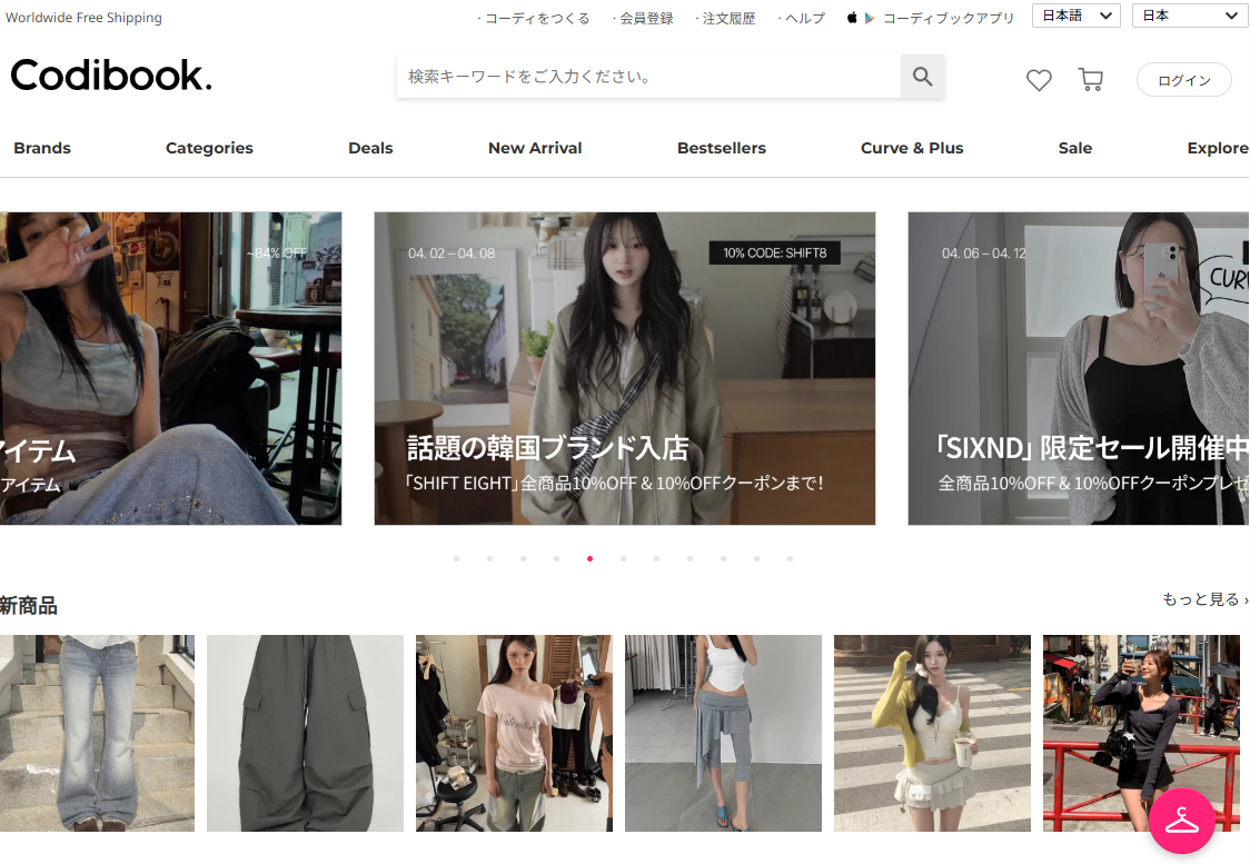 Codibookは、韓国ファッションのコーディネート提案に特化した通販サイトとして知られています。単品購入だけでなく、スタイリングされたコーディネートをそのまま参考にできるのが特徴で、ファッションに自信がない方でも取り入れやすい点が魅力です。