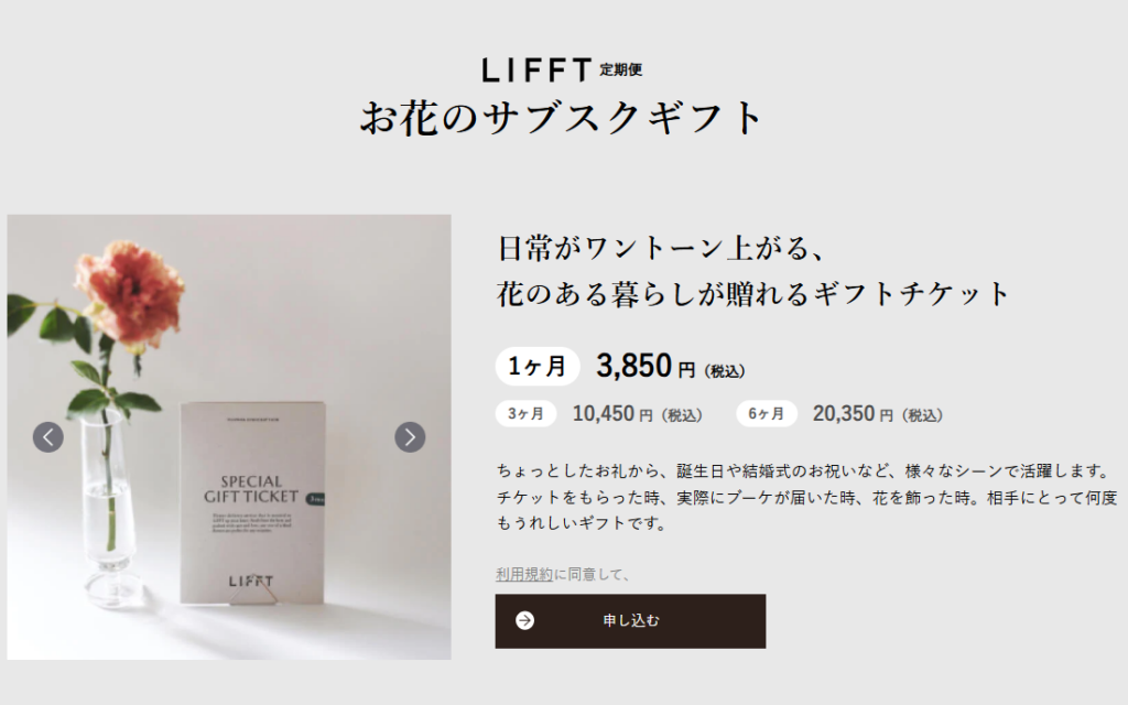 価格・品質・デザイン性のバランスが非常に高く、初めて花のある暮らしを取り入れたい方にとって理想的なサービスといえるでしょう。
