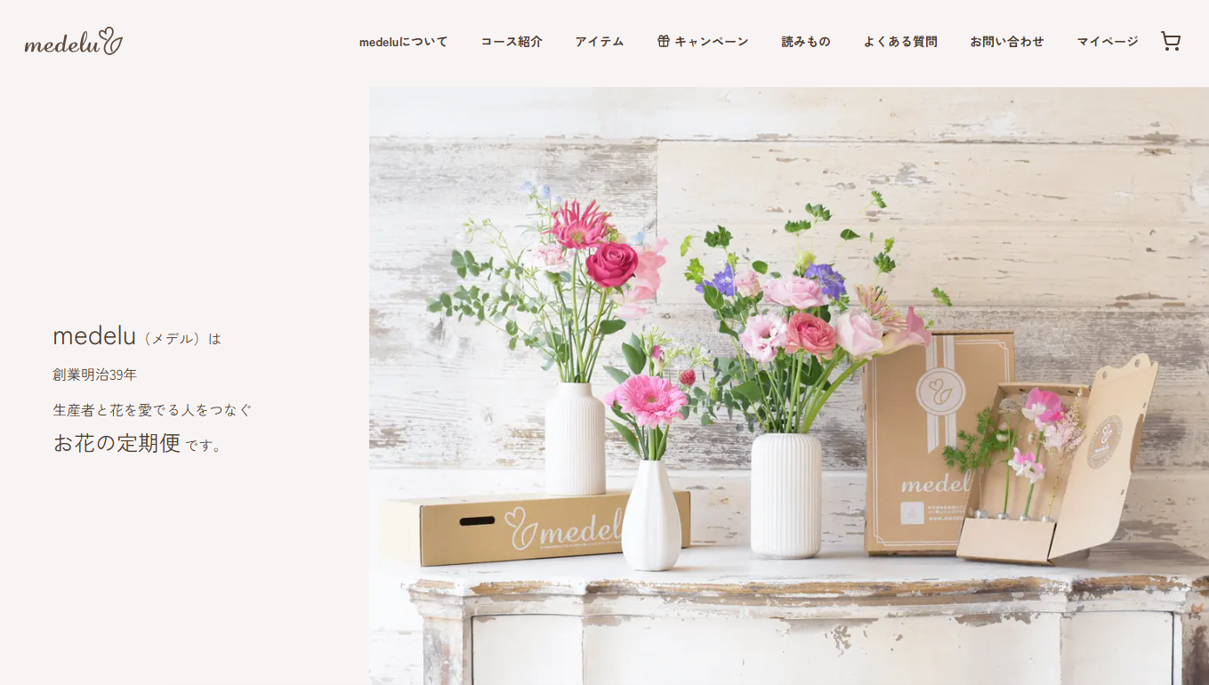 medeluは、日常に自然に溶け込むような優しい雰囲気のお花が特徴のサブスクサービスです。派手さよりもナチュラルさを重視したセレクトが多く、「さりげなく部屋を彩りたい」という方に適しています。