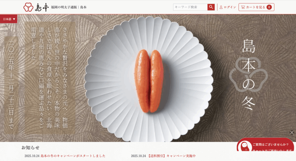 島本は、数量限定の生産体制で知られる“希少性の高い明太子ブランド”。辛さよりも上品さを重視しており、控えめな辛味とほどよい旨味が上質にまとまった味わいです。贅沢すぎるくらい丁寧に仕上げられており、“毎日食べたくなる明太子”としてファンが多いブランド。