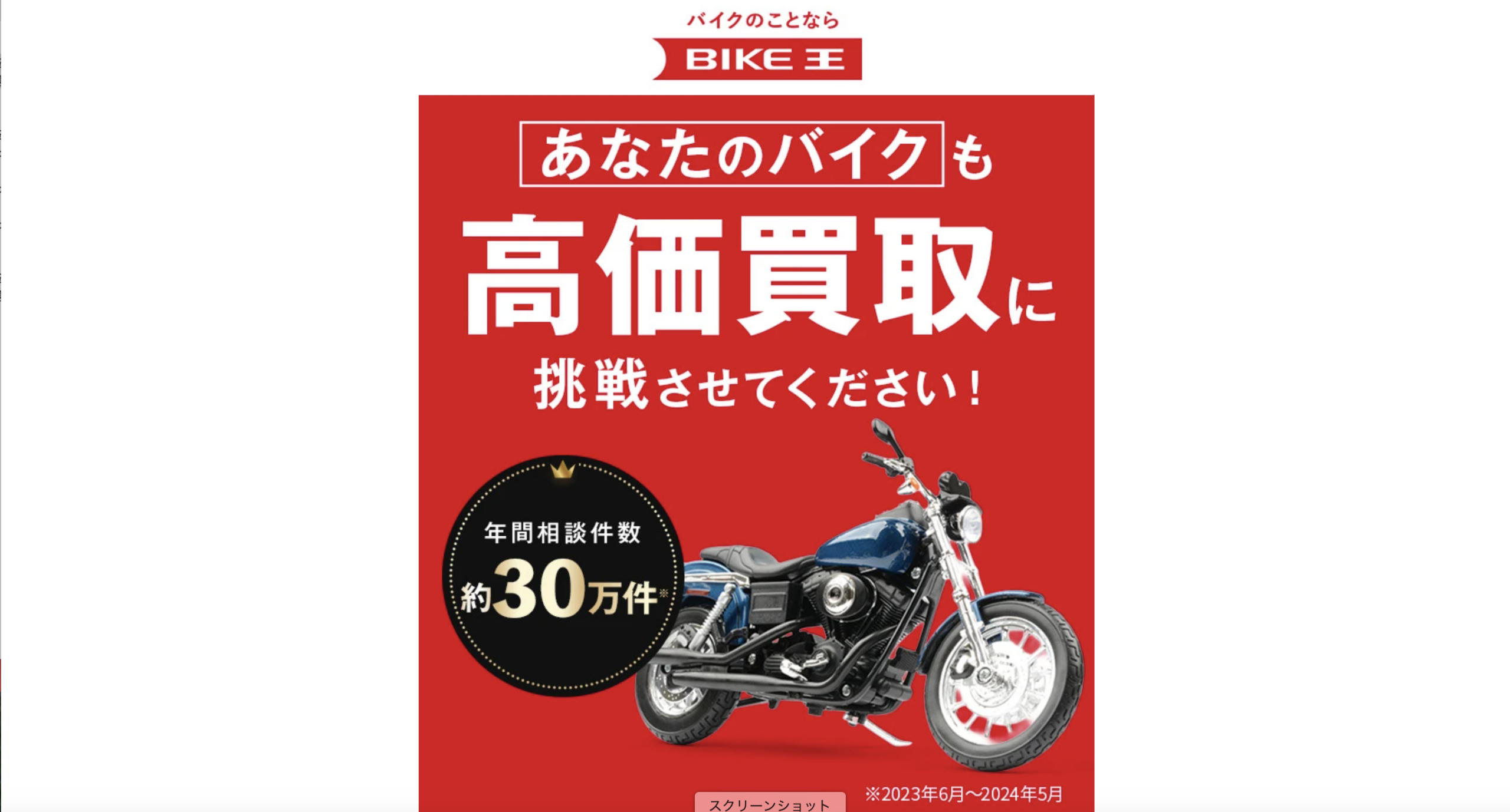 バイク王はバイク買取で有名な大手企業で、バイク本体だけでなくバイクウェアやヘルメットなどの用品買取にも対応しています。全国規模のネットワークと知名度があり、「大手に任せたい」「聞いたことのある会社が安心」という方に選ばれやすいサービスです。