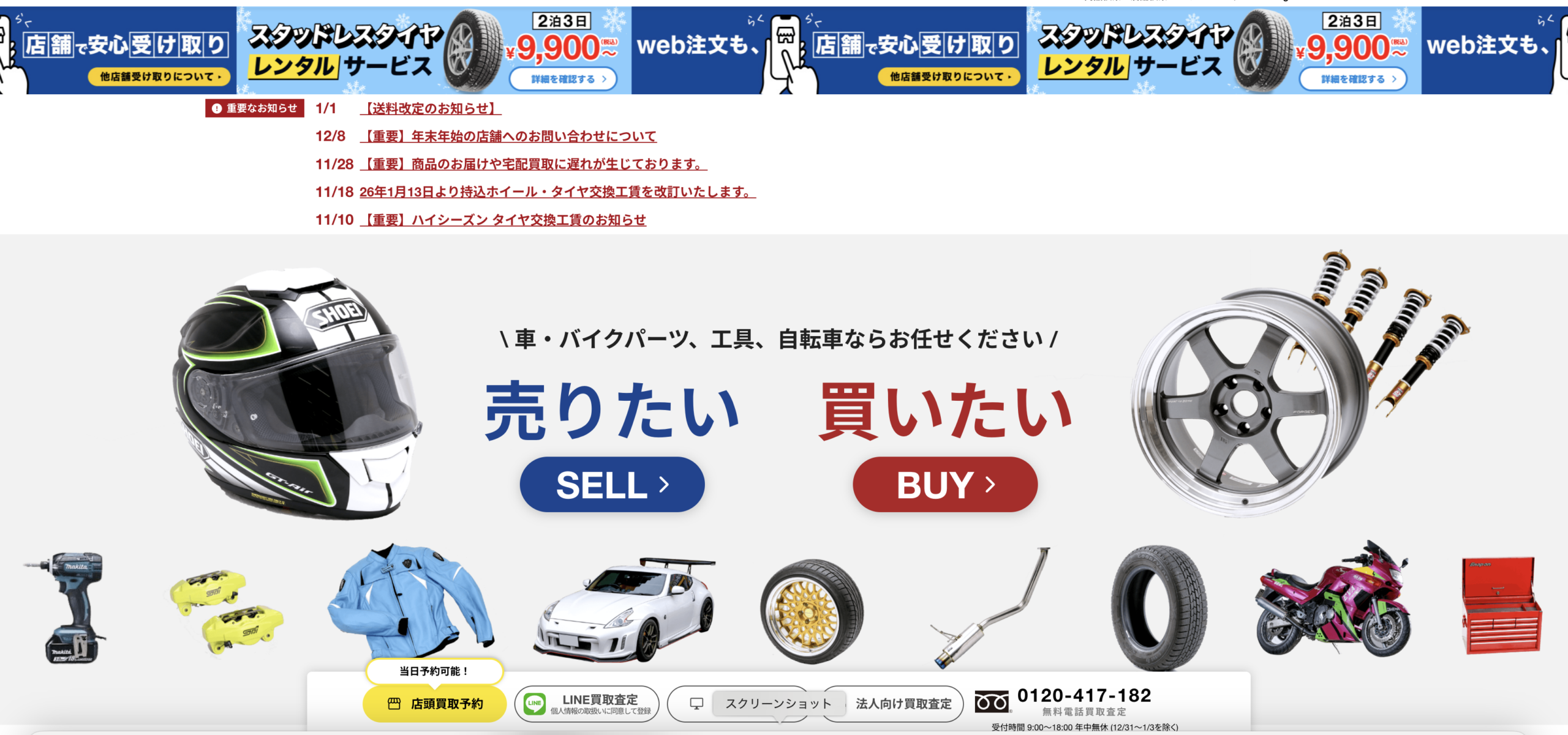 アップガレージはカー用品・バイク用品を専門に扱う中古パーツショップで、ヘルメットやバイクウェアの買取も行っています。用品に特化している点では総合リユースショップよりも安心感があります。