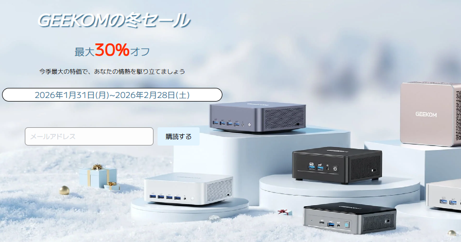 日本限定 GEEKOM A5 2026エディション ミニPC AMD Ryzen R5-7430U/R7-5825Uセール価格¥61,900から通常価格¥62,990(税込)