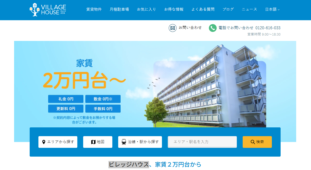 | 1位 | ビレッジハウス | 2万円〜 | ほぼ無料 | 全国10万室 |