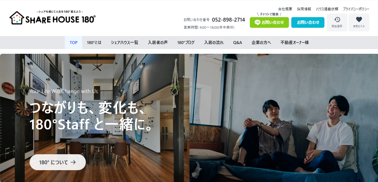 SHARE HOUSE 180°は、家賃や生活費をできるだけ抑えながら住みたい方に向いているシェアハウス型の住まいサービスです。家具や家電が備え付けられている物件もあるため、引っ越し準備を簡単にできる場合があります。また、共用スペースを通じて住人同士の交流が生まれることもあり、新しい環境で人とのつながりを持ちたい方にも向いています。費用を抑えながら生活したい方にとって検討しやすい住まいのスタイルと言えるでしょう。